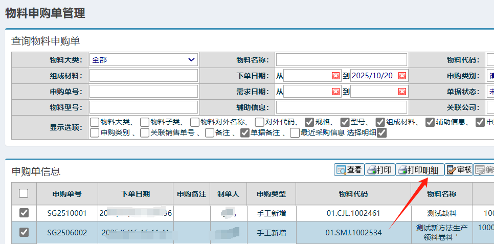 點(diǎn)晴模切ERP-申購單勾選明細(xì)打印功能-操作流程