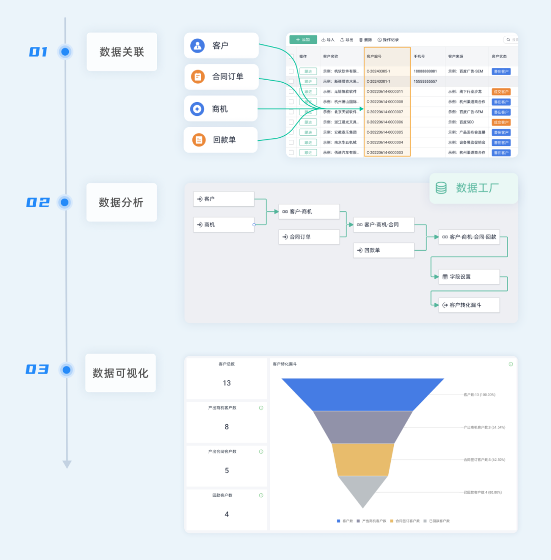 CRM系統(tǒng)不是擺設,數(shù)據(jù)不上線,你就永遠在黑箱操作。 ![]() 第二步:可視化的漏斗圖 數(shù)據(jù)要看得見。 漏斗圖能幫你一眼看到每個階段的客戶量、轉化率。 一個成熟的銷售團隊,每周都要開“漏斗例會”, 討論的不再是“你忙不忙”,而是: “你現(xiàn)在有多少客戶在談方案?為什么報價階段掉了30%?” 當銷售開始用數(shù)據(jù)說話,團隊的節(jié)奏就變了。 第三步:動作跟進機制 看漏斗只是開始,關鍵是要用它驅動作為。