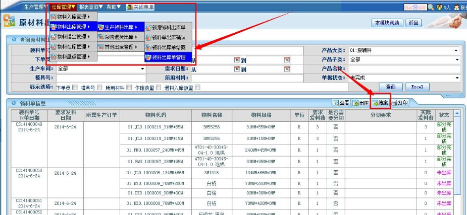 點(diǎn)晴模切ERP倉庫發(fā)料異常結(jié)案操作