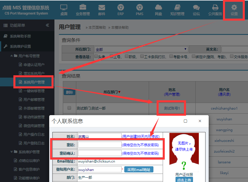 如果用戶忘記了自己的登錄密碼,系統(tǒng)不支持用戶自行重置密碼,必須通知管理員,由管理員幫助重置密碼。管理員無(wú)法直接查看到用戶的原始密碼,只能通過(guò)重置密碼的方式幫助用戶更改密碼,管理員更改用戶密碼位置如下:
