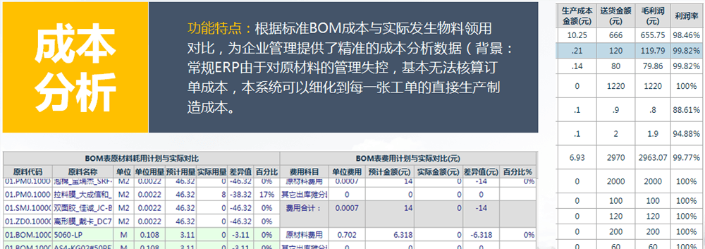 特別說明:沒有財務(wù)成本核算和總賬管理功能的系統(tǒng)一定不是ERP系統(tǒng)!市面上很多只有簡單進(jìn)銷存功能或簡單產(chǎn)供銷功能的管理軟件,根本就沒有物料成本核算和財務(wù)總賬功能,卻忽悠客戶、渾水摸魚,虛報高價冒充ERP系統(tǒng)進(jìn)行推廣和銷售。使用單位因為不了解ERP系統(tǒng)相關(guān)常識,上線后才發(fā)現(xiàn)沒有財務(wù)管理功能,而且缺少很多財務(wù)管理中的必要信息,導(dǎo)致無法與其他財務(wù)系統(tǒng)互通而后悔莫及。