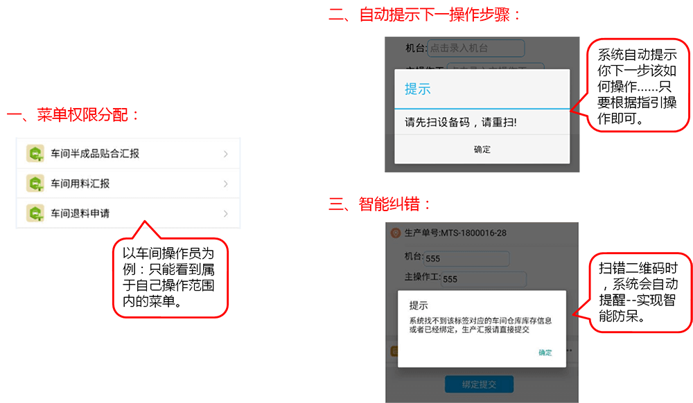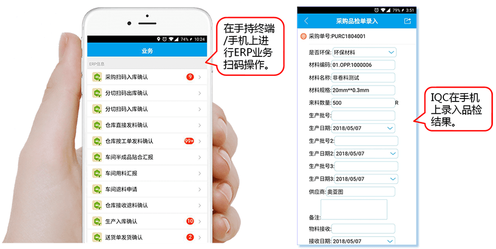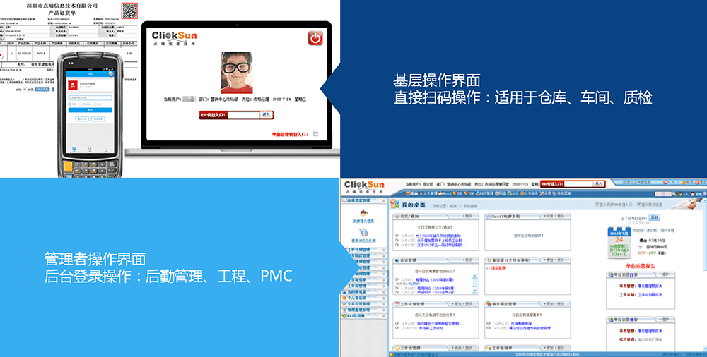 功能特點:點晴ERP系統(tǒng)結(jié)合了條碼技術(shù),通過手持終端識別條碼實現(xiàn)了流程自動跳轉(zhuǎn)指引,精準(zhǔn)快速進(jìn)入下一流程操作界面。與傳統(tǒng)ERP相比,操作人員無需經(jīng)過ERP系統(tǒng)流程培訓(xùn),即可流暢操作系統(tǒng),從而降低了ERP系統(tǒng)對操作人員的技能依賴,有效提高操作效率及準(zhǔn)確率。