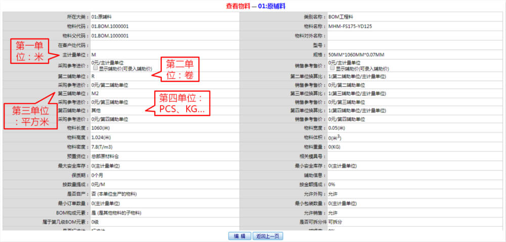設(shè)計理念:常規(guī)ERP通常只有一個單位,例如平方米,僅可用于查詢物料總庫存,但在模切排產(chǎn)、備料、分切的操作下面一個計量單位遠(yuǎn)遠(yuǎn)不夠。