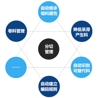 功能特點:針對模切行業(yè)特殊性專門設(shè)計的分切管理模塊,實現(xiàn)了分切料自動繼承對應(yīng)原始料的基本屬性,如供應(yīng)商、價格、批次、保質(zhì)期等,同時又能建立替代關(guān)系,通過智能BOM的應(yīng)用實現(xiàn)生產(chǎn)備料時系統(tǒng)自動識別推薦可用替代料,有效降低呆滯料產(chǎn)生。